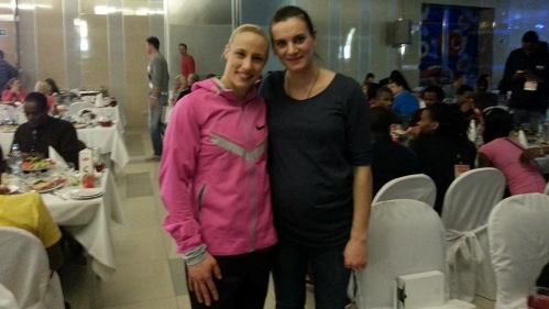 Έπειτα από τον αγώνα η Κυριακοπούλου συνάντησε την «τσαρίνα» των αιθέρων που ήταν καλεσμένη στο μίτινγκ. Και όπως φαίνεται και από τη φωτογραφία που έβγαλαν μαζί, δεν χρειάστηκε καν να ρωτήσει την Isinbayeva για το αν ισχύουν τα χαρμόσυνα νέα. Η κοιλίτσα της παγκόσμιας πρωταθλήτριας ήδη ξεχωρίζει.