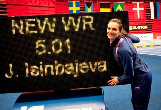 Τελευταία φορά που η Γελένα Ισινμπάγεβα είχε ποζάρει μπροστά από φωτεινό πίνακα για να… δείξει σε όλο τον πλανήτη το κατόρθωμα της, ήταν τον Φεβρουάριο του 2009. Τρία χρόνια τώρα όμως η Ρωσίδα πρωταθλήτρια φαίνεται ότι δεν έβγαλε στιγμή από το μυαλό της το πότε θα επαναλάβει την ίδια πόζα! Και τελικά τα κατάφερε την Πέμπτη (24/2). Στο διεθνές μίτινγκ της Στοκχόλμης η Ισινμπάγεβα επέστρεψε στην αγαπημένη της… συνήθεια και κατέρριψε το παγκόσμιο ρεκόρ στο επί κοντώ αφού ξεπέρασε τα 5,01 μέτρα!
