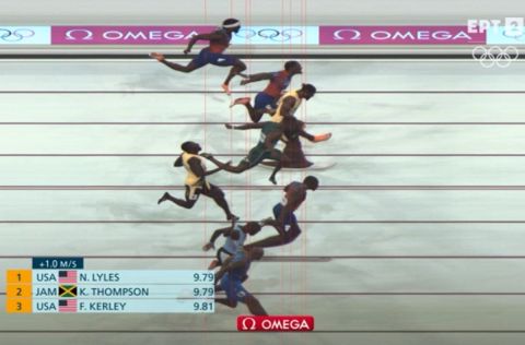 O ιδιαίτερα εκδηλωτικός Noah Lyles πρόλαβε στο νήμα τον Τζαμαικανό Kishane Thompson με το χρονόμετρο να γράφει 9.79 και στο φώτο φίνις να φαίνεται διαφορά 5 χιλιοστών υπέρ του Αμερικανού.